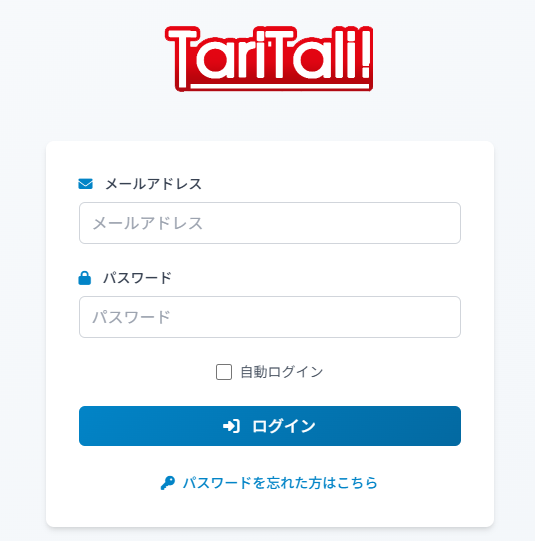TariTaliのログインには新規ユーザー登録に使用した「メールアドレス」と「パスワード」を入力します。
