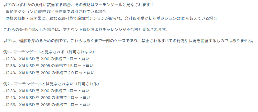 マーチンゲール取引に関しては、上記のように許可されている取引と許可されていない取引があります。