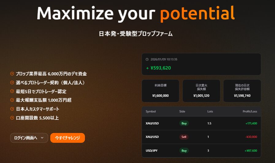 国内のプロップファームというだけで、日本人が利用しやすい環境(日本人サポート・国内銀行出金)などが整っているから、その部分はおすすめだね!